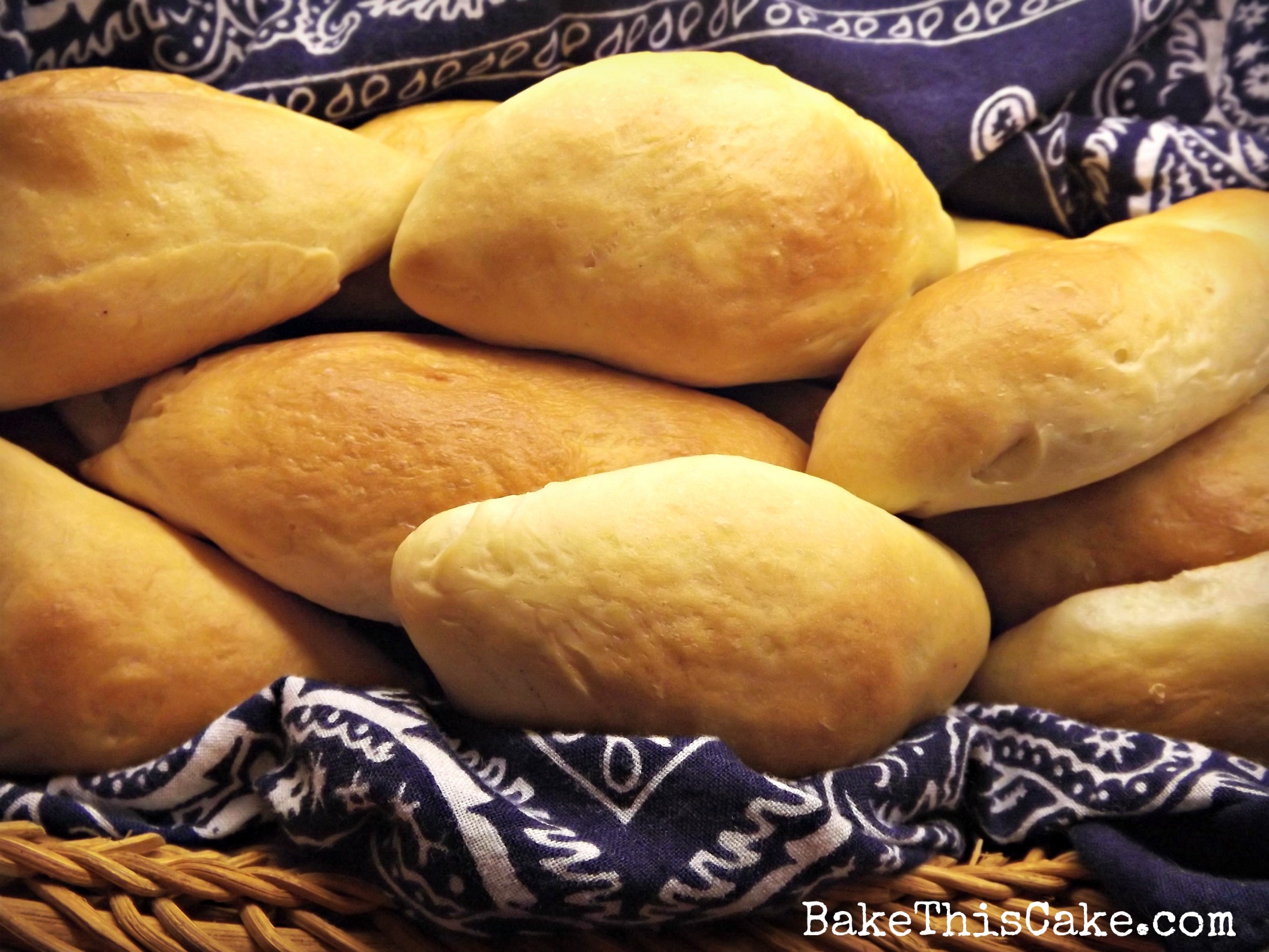When the butter soaks into the rolls, they look like this, all decked out in a cut handkerchief-lined basket for your holiday dinner table…