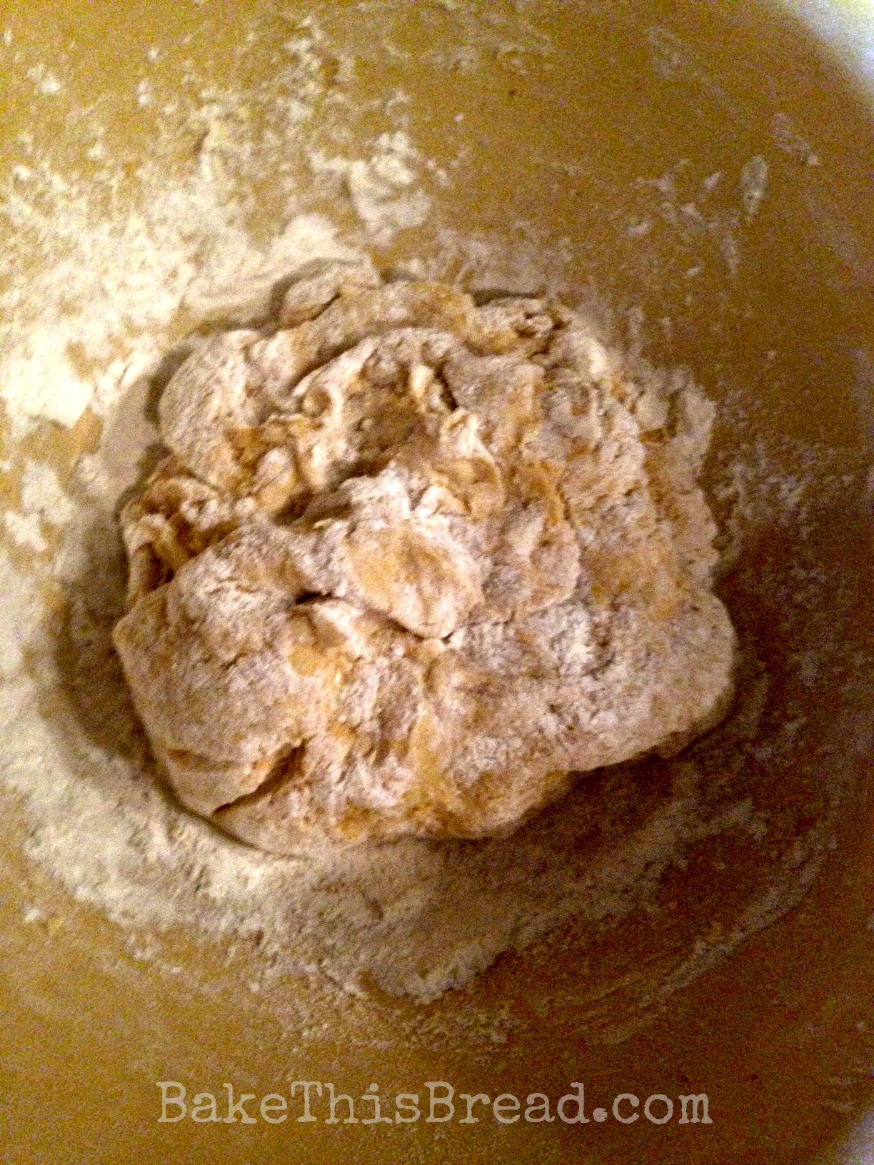 The dough will look like this after you’ve worked the raisins and nuts into the dough at this initial stage.